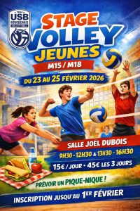 Le club organise pour les jeunes M15 et M18 un stage pendant les vacances de Février 2026